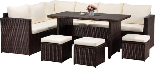 Outdoor Patio Furniture with Dining Table and Chair with Sofa Dust Cover